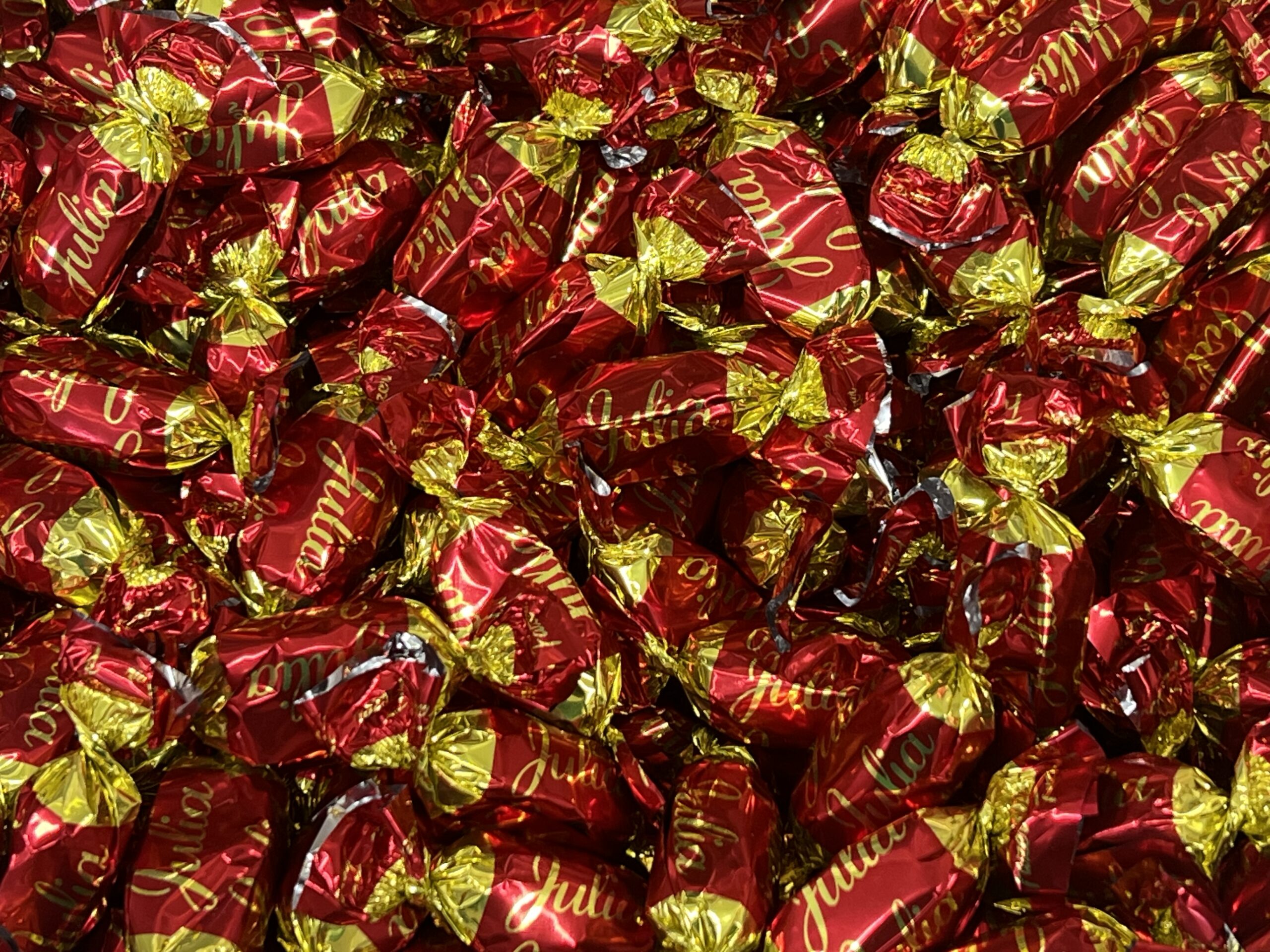 Sokeri, glukoosisiirappi, vesi, kaakaomassa, kaakaovoi, happamuudensäätöaineet (E330, E331, E337), hyytelöimisaine (E440), maitorasva, emulgointiaine (soijalesitiini), säilöntäaine (E202), aromit. Saattaa sisältää pähkinää, mantelia ja vehnää. Tummassa suklaassa vähintään 47% kaakaota.