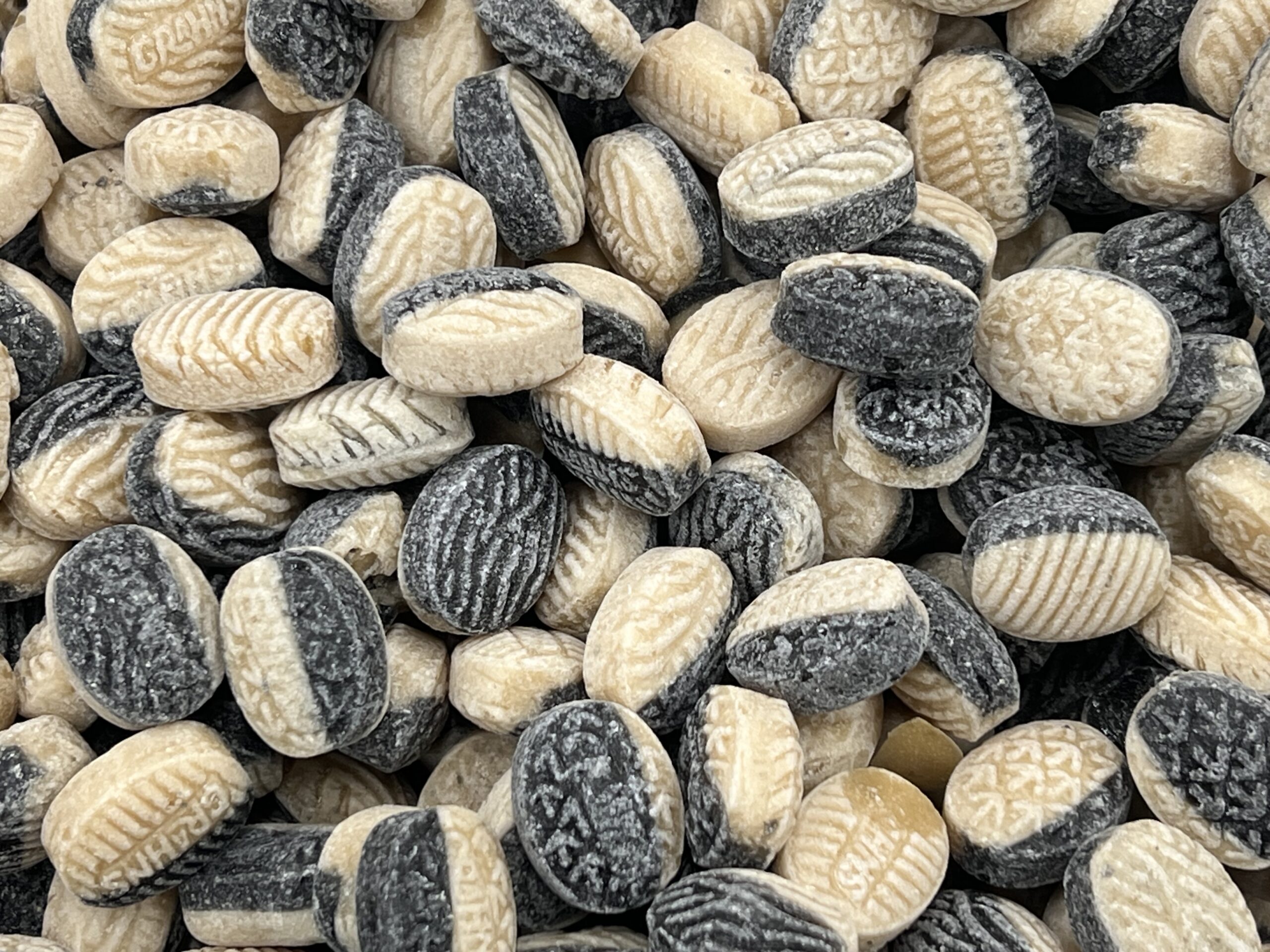 Socker, glukossirap, ammoniumklorid, lakritspulver, aromämne, bordssalt, färgämne (E150c, E153).