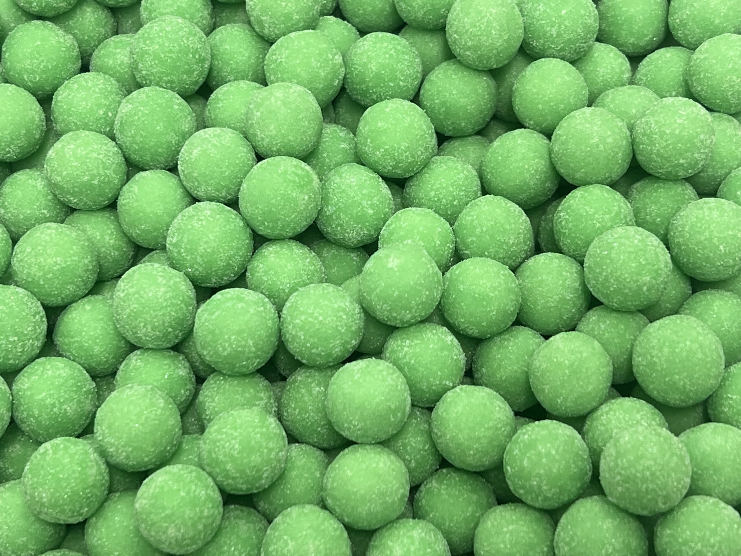 Sokeri, glukoosisiirappi, pintakäsittelyaine (E470b), omenahappo, aromi (omena), elintarvikeväri (E131).