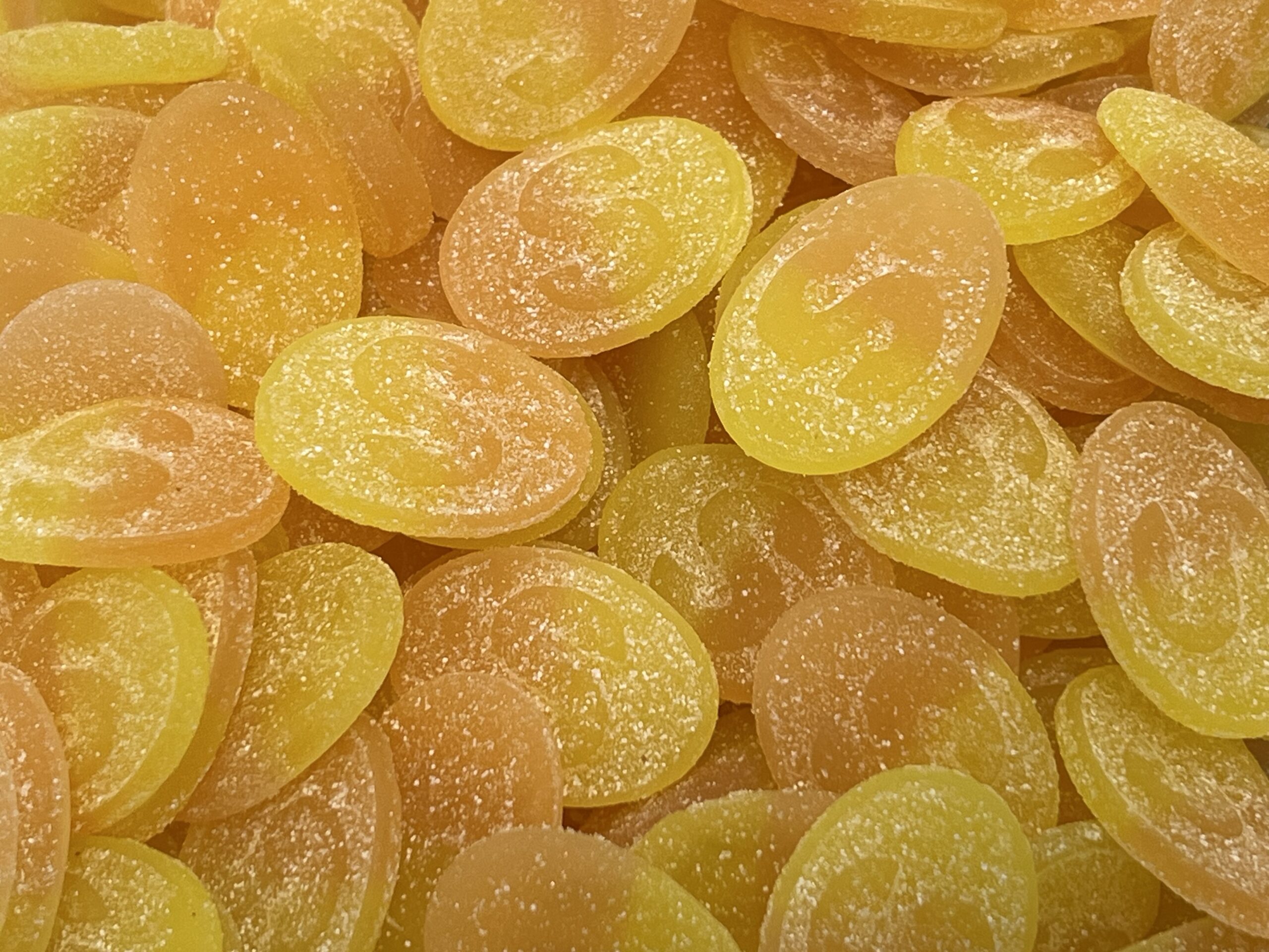 Glukoosisiirappi, sokeri, maissitärkkelys, hapot (sitruunahappo, omenahappo), happamuudensäätöaineet (natriummalaatti, natriumsitraatit), luontainen aromi, värit (paprikauute, kurkumiini). Vehnätärkkelys.