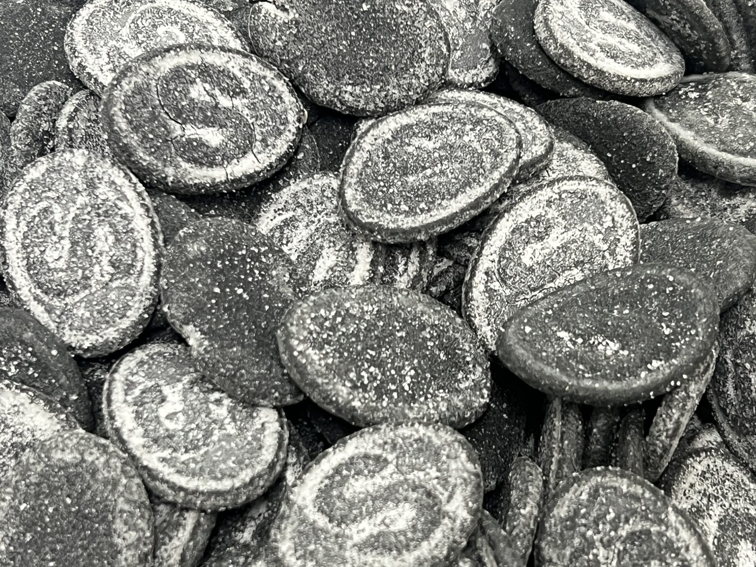 Glukoosi, sokeri, liivate (sika), ammoniumkloridi, lakritsi, väri (kasvihiili), aromit