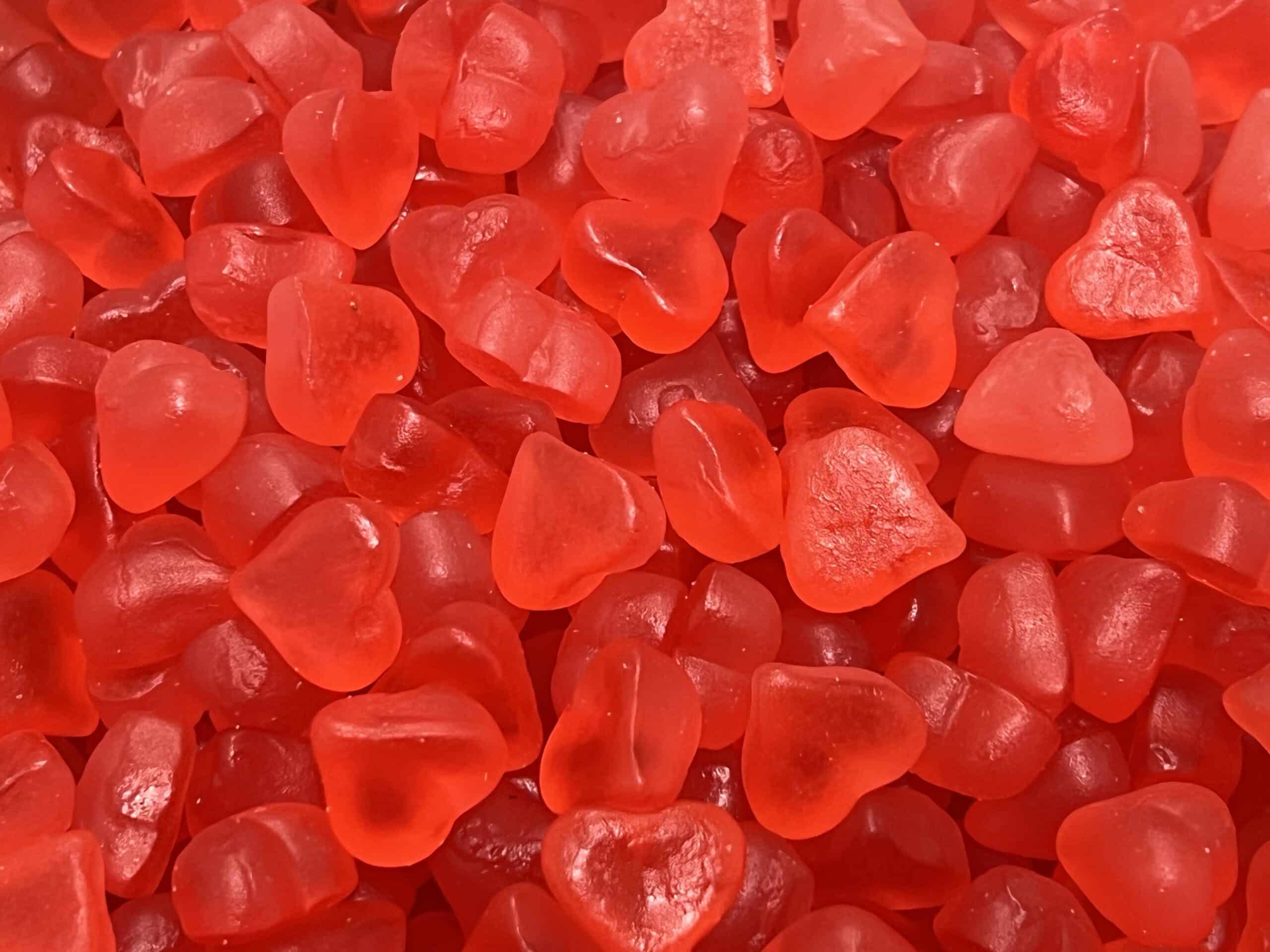 Sötningsmedel (maltitol), gelatin, vatten, surhetsreglerande medel (citronsyra), arom, färgämne (E120, E161b), ytbehandlingsmedel (karnaubavax), kokosolja, rapsolja. Överdriven användning av produkten kan ha laxerande effekter.